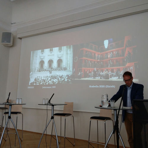 - Die Vorträge von Martin Schneider (Blick nach Bayreuth) und Nicola Gess (Totales Theater) entfielen. Stattdessen sprach Antonia Eder zum Thema: „Nicht nur, aber auch Salzburg: Kongeniale Kooperationen. Text: Hugo von Hofmannsthal / Musik: Richard Strauss"